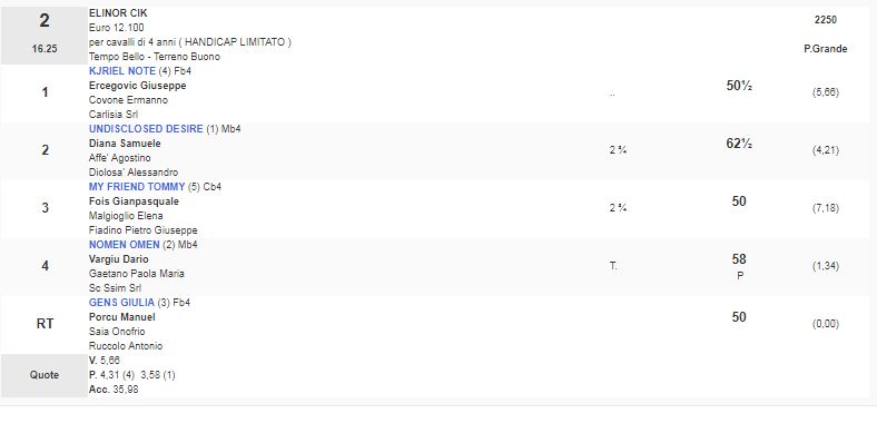 Ippica, Napoli: Risultati 1^ e 2^ Corsa Vincono Secret Sharp e Kjriel Note 1^ Corsa Premio Mr Almo vinta da Secret Sharp 2^ Corsa Premio Elnor Cik vinta da Kjriel Note Condividi sul web: Fai clic per condividere su Facebook (Si apre in una nuova finestra) Facebook Fai clic per condividere su WhatsApp (Si apre in una nuova finestra) WhatsApp Fai clic per condividere su Telegram (Si apre in una nuova finestra) Telegram Fai clic per condividere su X (Si apre in una nuova finestra) X Fai clic qui per stampare (Si apre in una nuova finestra) Stampa Fai clic per inviare un link a un amico via e-mail (Si apre in una nuova finestra) E-mail Mi piace Caricamento... Correlati
