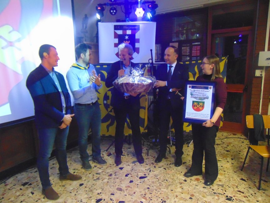 “Si è svolta , sabato 23 febbraio la tanto attesa Cena del Cavolo di San Marzanotto presso il circolo ricreativo Sempre Uniti della CRA di Asti. Borghigiani e simpatizzanti hanno partecipato con entusiasmo all’ottima cena, ovviamente a base di cavolo, preparata da uno chef stellato. Durante la serata all’insegna della goliardia è stata presentata la pergamena d’autore, questa volta disegnata dal maestro Antonio Giuntoli. Non sono mancati i filmati dove si è voluto far conoscere l’attività del comitato fino alla tanto attesa premiazione che ha visto il Comitato Palio Borgo San Pietro aggiudicarsi l’ambito premio denominato la Cavolata dell’anno. La premiazione è stata officiata alla presenza del Sindaco di Asti Maurizio Rasero, dal Capitano del Palio Michele Gandolfo, dal Rettore di Borgo San Marzanotto Emil Dovico e ovviamente dal Rettore del Borgo San Pietro Mario Raviola che ha accettato il premio con sportività. La motivazione dell’assegnazione del prestigioso premio, (un cesto contenente cavoli di ottima qualità e una calcolatrice più un quadro ricordo), è dovuto per non avere saputo contare bene i partecipanti ammessi al corteo Storico schierando 46 partecipanti invece dei 45 che il regolamento impone. Un numero in più che ha decretato la penalizzazione al Palio 2018 che consiste nel poter sfilare solo con il vessillo.Appuntamento al prossimo anno, la giuria è già al lavoro per individuare chi commetterà la “cavolata dell’anno 2019” più eclatante!!”