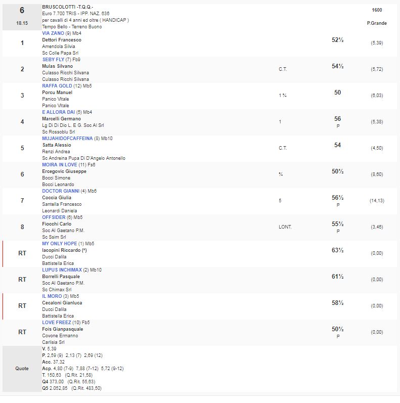6^ Corsa Premio Bruscolotti – T.Q.Q. – vinta da Via Zano