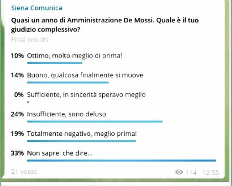 Il sondaggio che sta circolando come Siena Comunica è un fake: l’Amministrazione Comunale si dissocia da questo contenuto e prenderemo provvedimenti in merito.