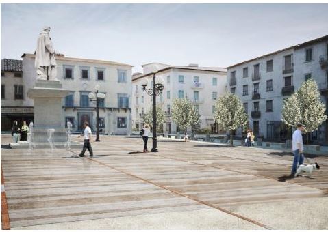 Il nuovo look della piazza prevede una pavimentazione in travertino arricchita da alcune fasce longitudinali in acciaio corten, il potenziamento dell’impianto di illuminazione, anche con luci sulla pavimentazione, l’inserimento di una serie di alberature su due lati della piazza e di alcuni giochi d’acqua nei pressi del monumento a Giuseppe Montanelli.