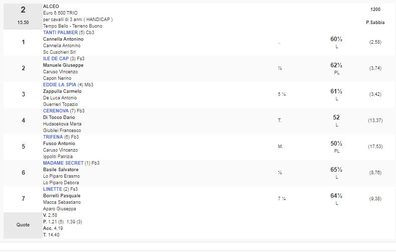 2^ Corsa Premio Alceo vinta da Tanti Palmier