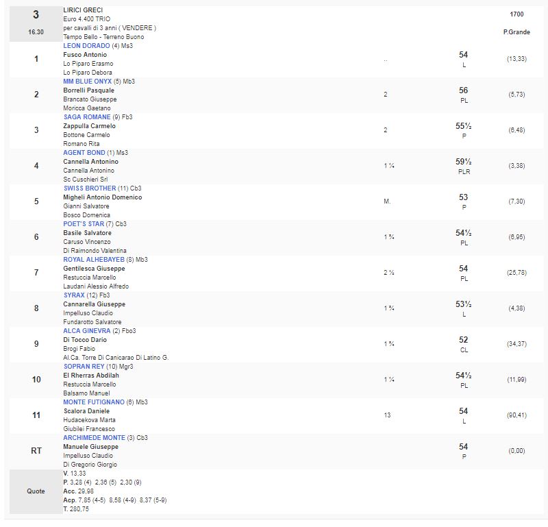 3^ Corsa Premio Lirici Greci vinta da Leon Dorado