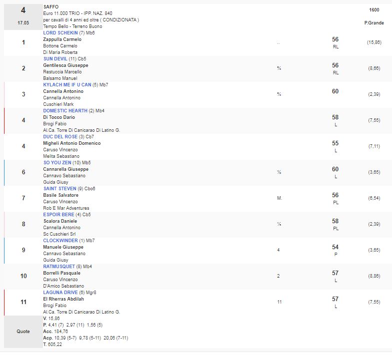 4^ Corsa Premio Saffo vinta da Lord Schekin