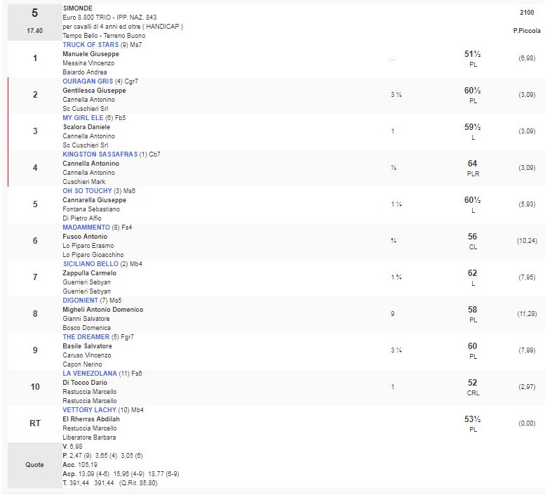 5^ Corsa Premio Simonde vinta da Truck of Stars