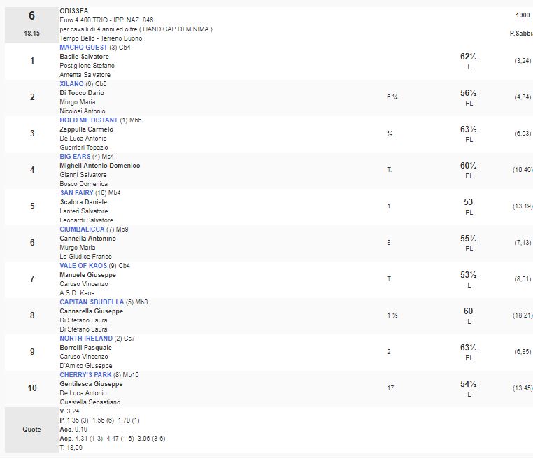 6^ Corsa Premio Odissea vinta da Macho Guest