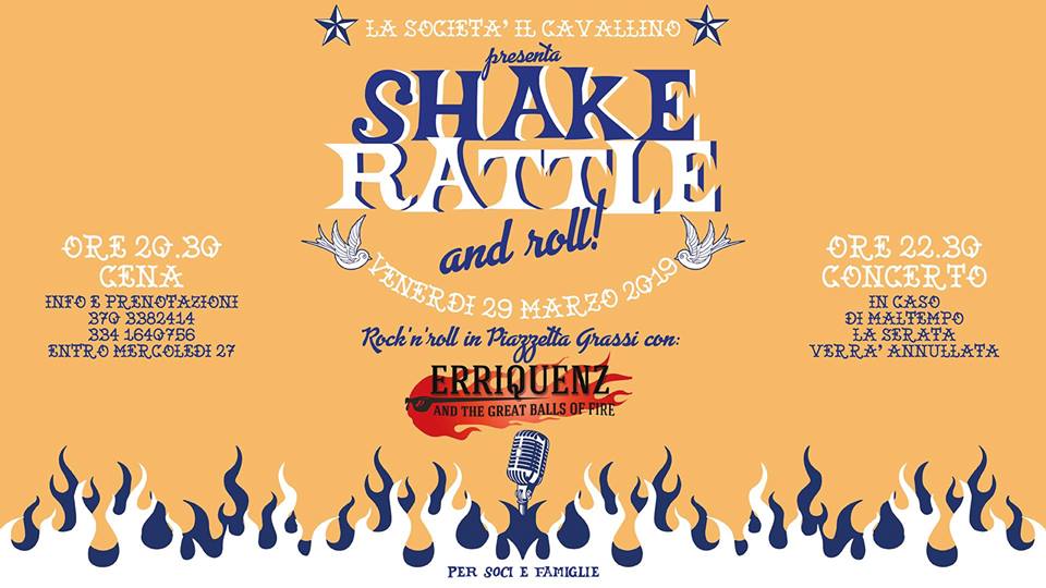 La Società Il Cavallino vi invita a partecipare ad una serata di puro rock’n’roll in Piazzetta Virgilio Grassi. Venerdì 29 marzo saliranno per la prima volta sul glorioso palcoscenico della Piazzetta Erriquenz & The Great Balls of Fire, un trio formato da Luca Erriquenz, Daniele Torrini e Michele Landi che proporrà un viaggio attraverso le sonorità del rock’n’roll, passando per il blues e il rockabilly… insomma una serata di musica e ballo scatenato!