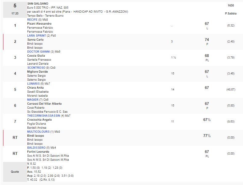 Ippica, Follonica: Oggi 20/03 Risultati 5^ Corsa Vince Recife. Secondo posto lara Sprint con Carlo Sanna detto “Brigante”
