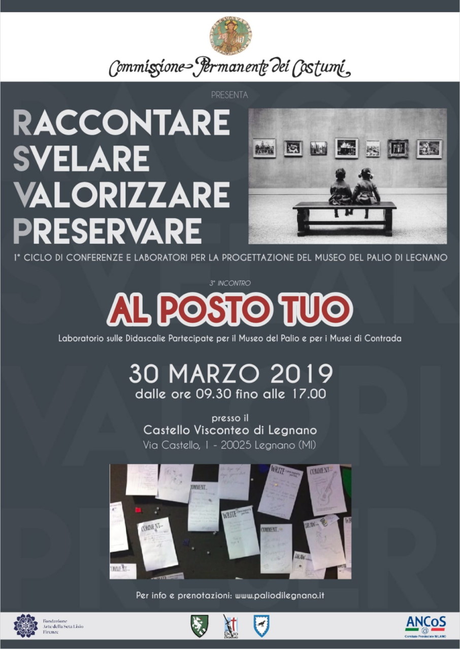 “A conclusione degli incontri della rassegna R.S.V.P. RACCONTARE – SVELARE –VALORIZZARE – PRESERVARE. 1° ciclo di conferenze e laboratori per la progettazione del Museo del Palio di Legnanoorganizzate congiuntamente dalla Contrada San Domenico e dalla Contrada Sant’Erasmo in collaborazione con la Commissione Permanente dei Costumi del Palio di Legnano.