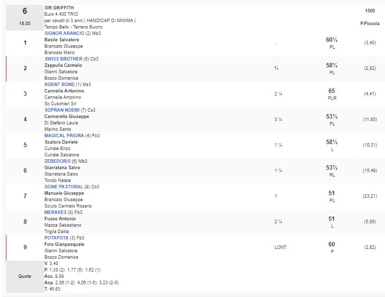 Ippica, Siracusa: Oggi 23/03 Risultati 5^ e 6^ Corsa Vincono Eblois Moi e Signor Arancio 5^ Corsa Premio Pindaro vinta da Eblois Moi 6^ Corsa Premio Sir Griffith vinta da Signor Arancio Condividi sul web: Condividi su Facebook (Si apre in una nuova finestra) Facebook Condividi su WhatsApp (Si apre in una nuova finestra) WhatsApp Condividi su Telegram (Si apre in una nuova finestra) Telegram Condividi su X (Si apre in una nuova finestra) X Stampa (Si apre in una nuova finestra) Stampa Invia un link a un amico via e-mail (Si apre in una nuova finestra) E-mail Mi piace Caricamento... Correlati