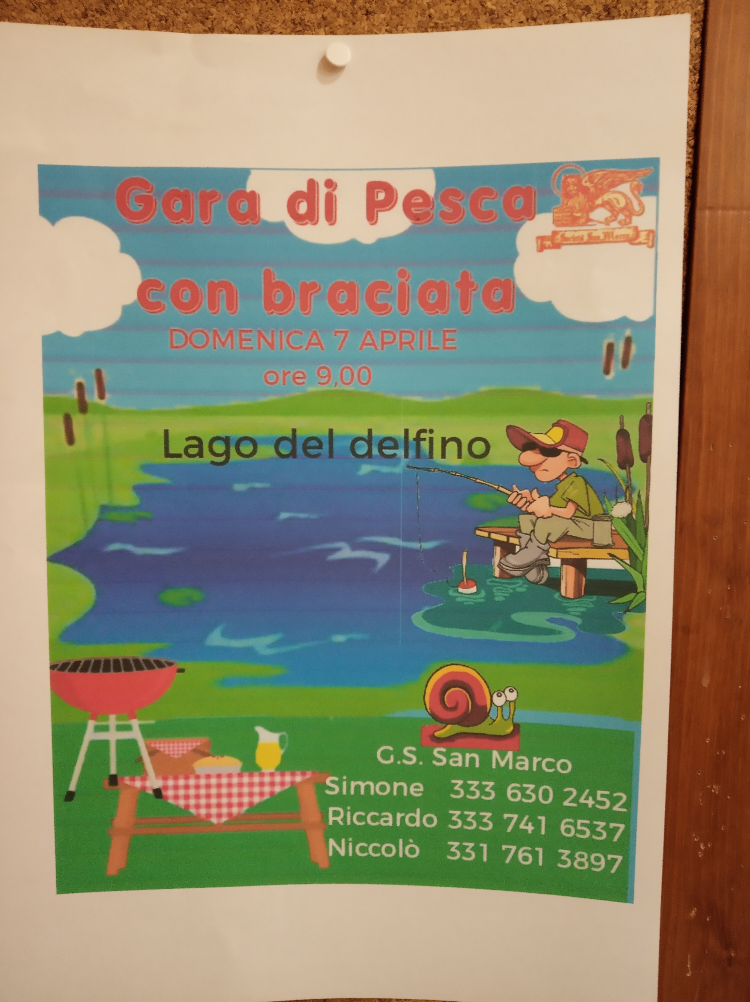 | Il Gruppo Sportivo San Marco ha organizzato per Domenica 7 Aprile gara di pesca con ricca braciata presso il lago del Moro a San Rocco a Pilli.