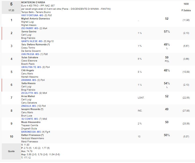 5^ Corsa Premio Monteroni d’Arbia vinta da Viky Fortuna da Captain Marvelous e Pietra Gallurese di proprietà di Migheli Alessio e allenato da Migheli Luigi