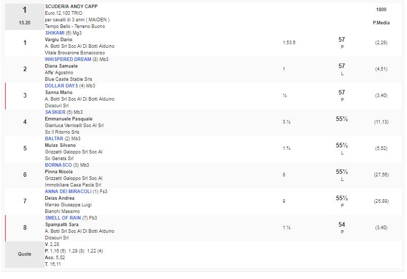 Ippica, Milano: Oggi 27/03 Risultati 1^ e 2^ Corsa Vincono Shikami e Lady di Ferro 1^ Corsa Premio Scuderia Andy Capp vinta da Shikami 2^ Corsa Premio Brugherio vinta da Lady di Ferro Condividi sul web: Fai clic per condividere su Facebook (Si apre in una nuova finestra) Facebook Fai clic per condividere su WhatsApp (Si apre in una nuova finestra) WhatsApp Fai clic per condividere su Telegram (Si apre in una nuova finestra) Telegram Fai clic per condividere su X (Si apre in una nuova finestra) X Fai clic qui per stampare (Si apre in una nuova finestra) Stampa Fai clic per inviare un link a un amico via e-mail (Si apre in una nuova finestra) E-mail Mi piace Caricamento... Correlati