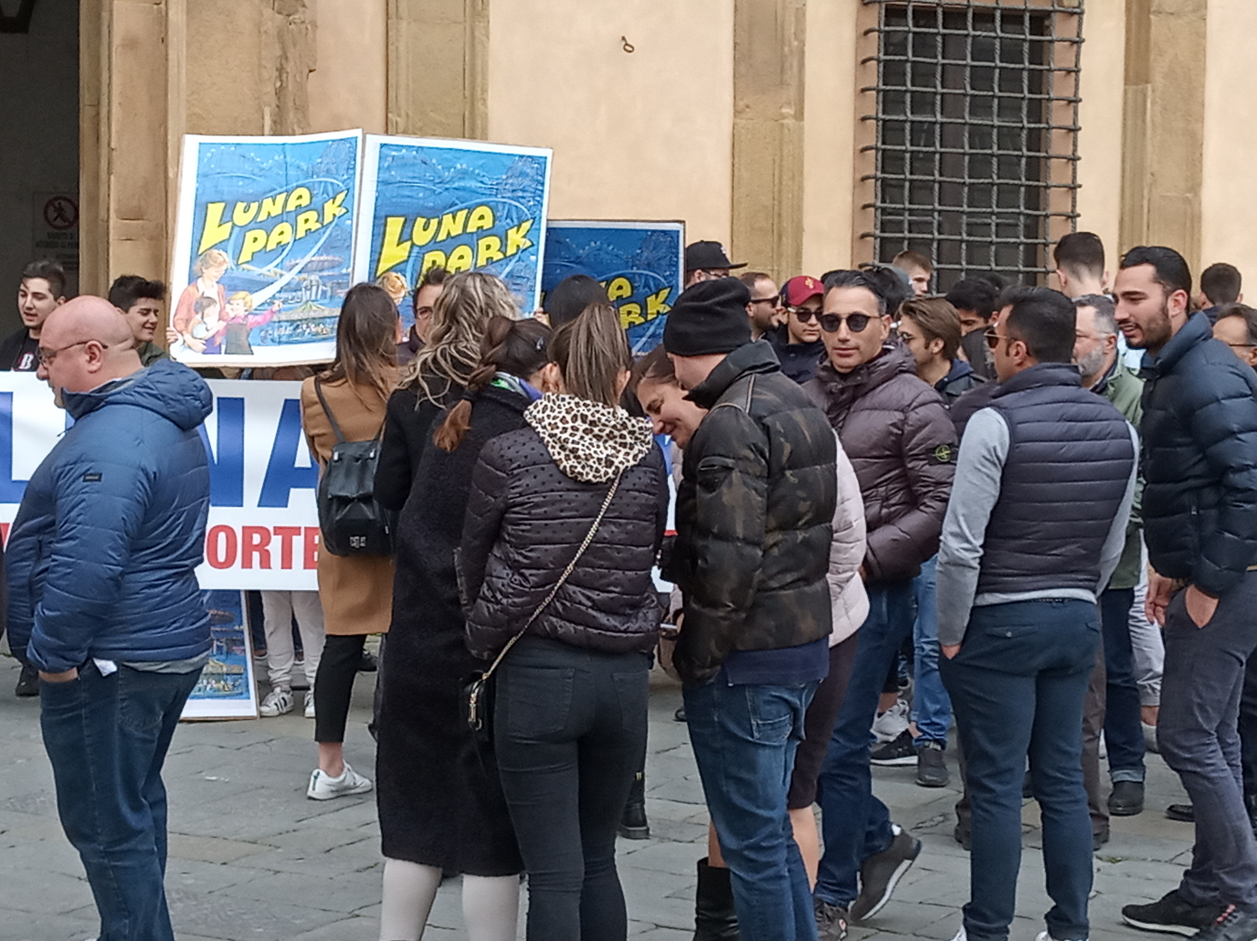 Questa mattina corteo e presidio do protesta dei giostrai davanti alla Prefettura. Il corteo si è snodato per le vie del centro fino a raggiungere Piazza del Duomo dove ha stazionato davanti alla Prefettura in attesa che il Prefetto di Siena ricevesse i portavoce dei giostrai. I giostrai protestano per lo spostamento del Luna Park dalla Fortezza Medicea al parcheggio del Palasport, accusando una grave perdita economica dovuta al fatto che al parcheggio della Mens Sana una quarantina di installazioni verrebbero a mancare per mancanza di spazi che invece garantisce la Fortezza Medicea dando lavoro a tutti i giostrai coinvolti. Poco fa la rappresentanza dei giostrai è stata ricevuta dal Prefetto, con la speranza che quest’ultimo riesca a far fare marcia indietro all’amministrazione comunale, la quale annulli l’ordinanza riportando il Luna Park dentro gli spazi della Fortezza Medicea.