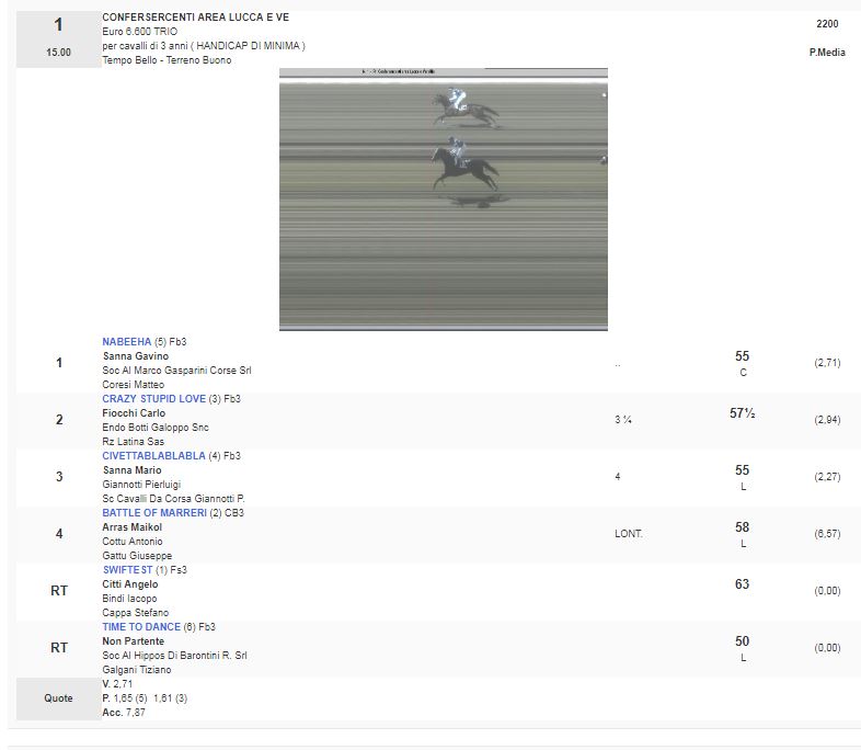 1^ Corsa Premio Confesercenti Area Lucca e Ve vinta da Nabeeha