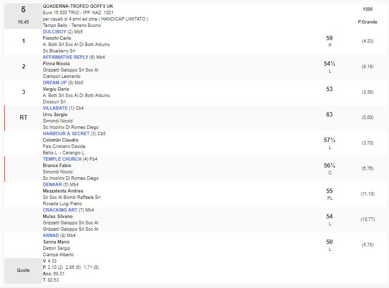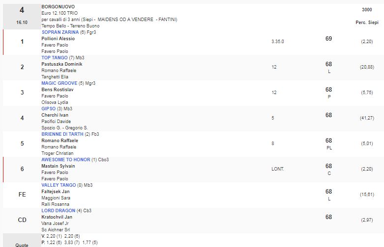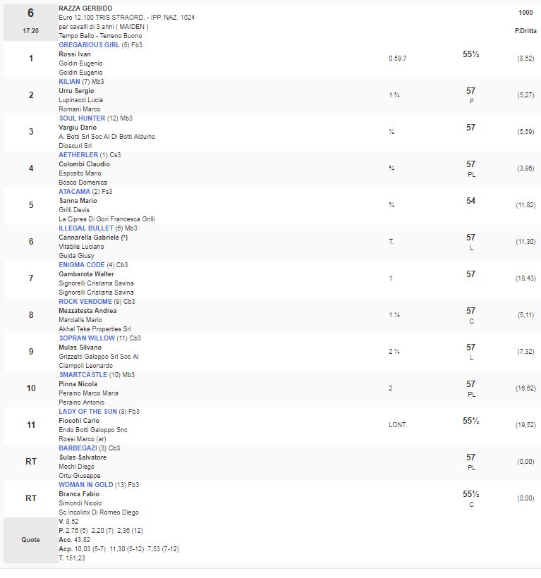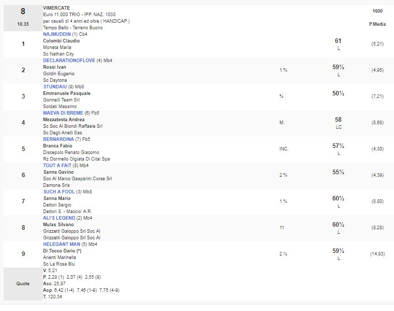 Ippica, Milano: Oggi 30/03 Risultati Corse Odierne 1^ Corsa Premio Castellazzo vinta da Zanini 2^ Corsa Premio Vizzola vinta da Ventotene 3^ Corsa Premio Dei laghi- Trofeo Goffs Uk vinta da Siculi 4^ Corsa Premio Borgonuovo vinta da Sopran Zarina 5^ Corsa Premio Quaderna – Trofeo Goffs Uk vinta da Dulciboy 6^ Corsa Premio Razza Gerbido vinta da Gregorious Girl 7^ Corsa Premio Porta Nuova vinta da Holly Water 8^ Corsa Premio Vimercate vinta da Najmuddin Condividi sul web: Fai clic per condividere su Facebook (Si apre in una nuova finestra) Facebook Fai clic per condividere su WhatsApp (Si apre in una nuova finestra) WhatsApp Fai clic per condividere su Telegram (Si apre in una nuova finestra) Telegram Fai clic per condividere su X (Si apre in una nuova finestra) X Fai clic qui per stampare (Si apre in una nuova finestra) Stampa Fai clic per inviare un link a un amico via e-mail (Si apre in una nuova finestra) E-mail Mi piace Caricamento... Correlati