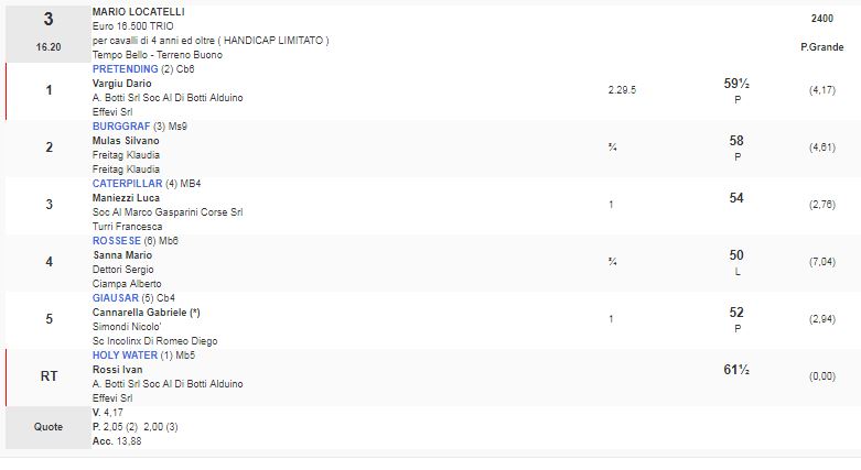 Ippica, Milano: Oggi 31/03 Risultati 3^e 4^ Corsa Vincono Pretending e Cima Fire 3^ Corsa Premio Mario Locatelli vinta da Pretending 4^ Corsa Premio Alberto Chantre vinta da Cima Fire Condividi sul web: Fai clic per condividere su Facebook (Si apre in una nuova finestra) Facebook Fai clic per condividere su WhatsApp (Si apre in una nuova finestra) WhatsApp Fai clic per condividere su Telegram (Si apre in una nuova finestra) Telegram Fai clic per condividere su X (Si apre in una nuova finestra) X Fai clic qui per stampare (Si apre in una nuova finestra) Stampa Fai clic per inviare un link a un amico via e-mail (Si apre in una nuova finestra) E-mail Mi piace Caricamento... Correlati