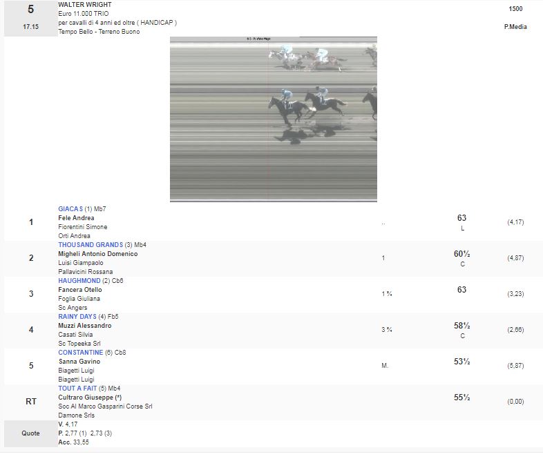 5^ Corsa Premio Walter Wright vinta da Giacas