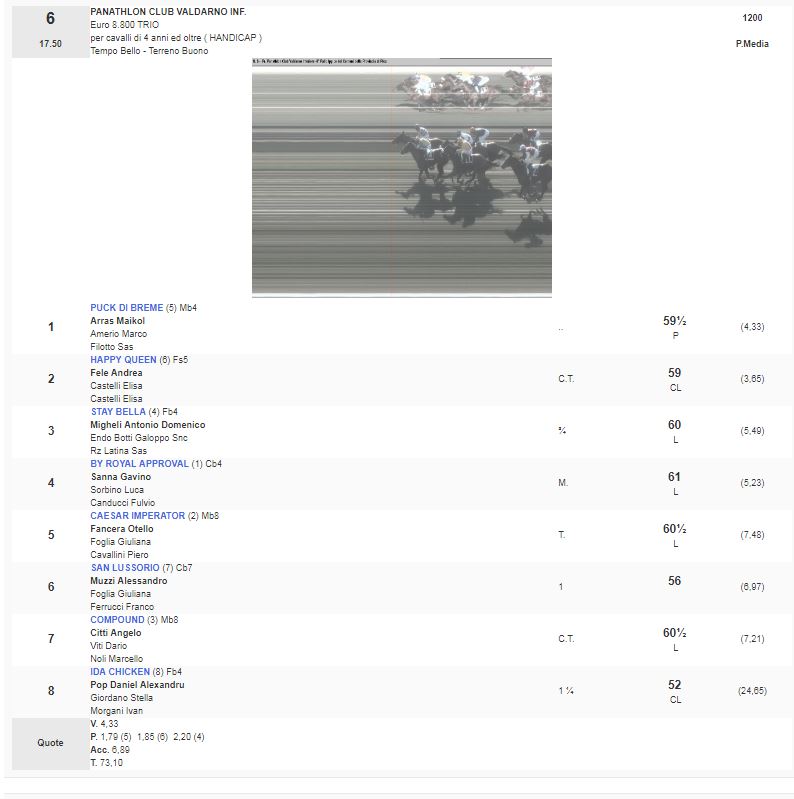 Ippica, Pisa: Oggi 31/03 Risultati 6^ Corsa – Finale “Palio dei Comuni della Provincia di Pisa” vinta da Puck di Breme per il Comune di Vecchiano 6^ Corsa Premio Panathon Club Valdarno inf. – Finale “Palio dei Comuni della provincia di Pisa” vinta da Puck di breme per il Comune di Vecchiano Condividi sul web: Fai clic per condividere su Facebook (Si apre in una nuova finestra) Facebook Fai clic per condividere su WhatsApp (Si apre in una nuova finestra) WhatsApp Fai clic per condividere su Telegram (Si apre in una nuova finestra) Telegram Fai clic per condividere su X (Si apre in una nuova finestra) X Fai clic qui per stampare (Si apre in una nuova finestra) Stampa Fai clic per inviare un link a un amico via e-mail (Si apre in una nuova finestra) E-mail Mi piace Caricamento... Correlati