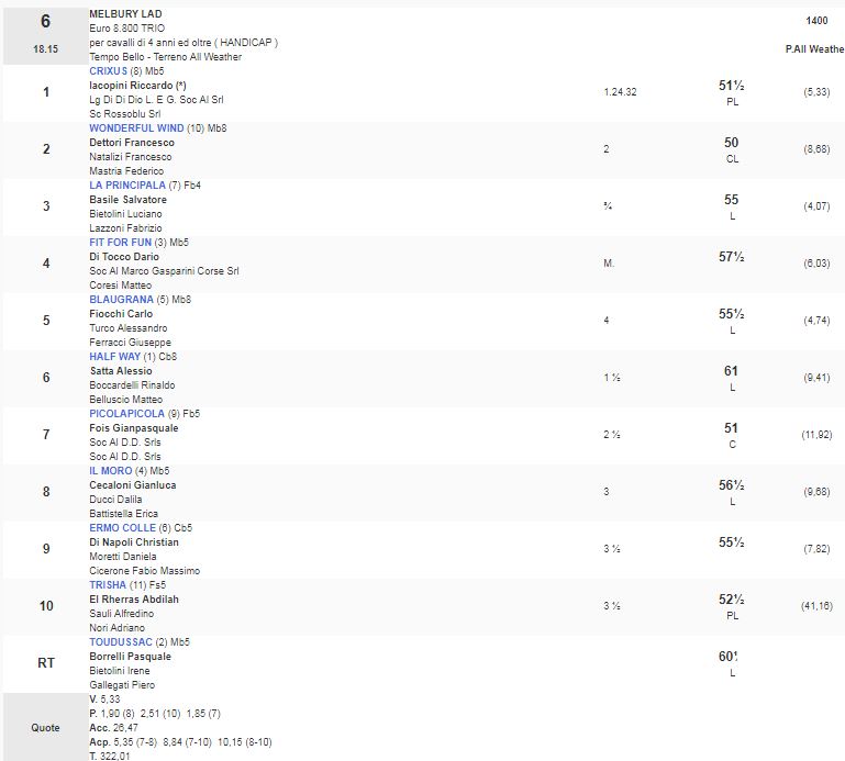 6^ Corsa Premio Melbury Lad vinta da Crixus