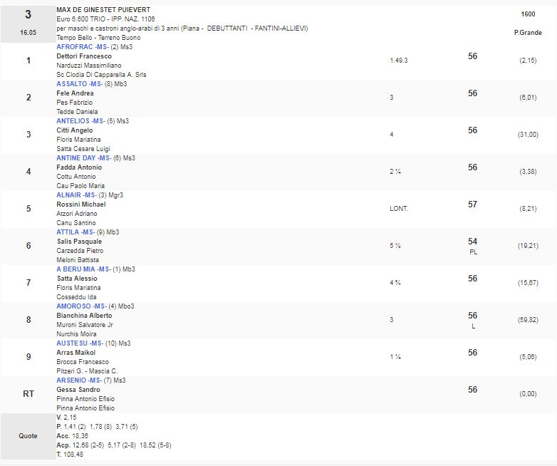 3^ Corsa Premio Max de Ginestet Puievert vinta da Afrofrac da Frac di Montalbo (ms) e Afrodite da Clodia (ms) di proprietà della Scuderia Clodia e allenato da massimiliano Narduzzi