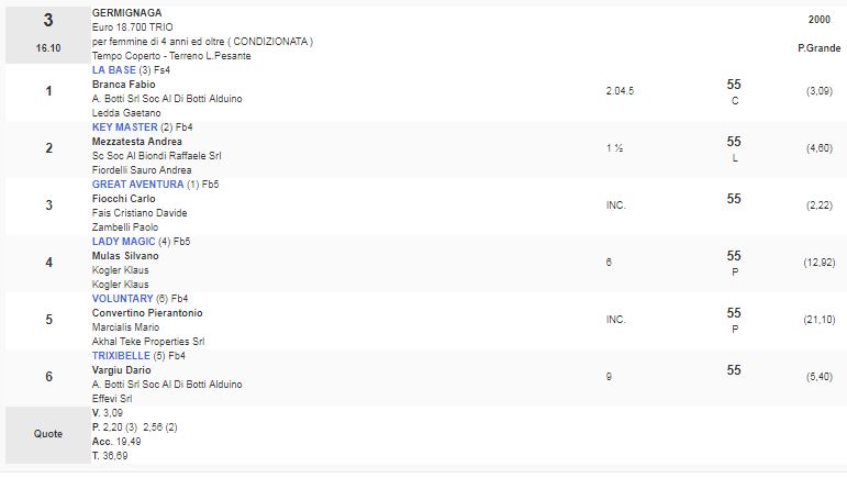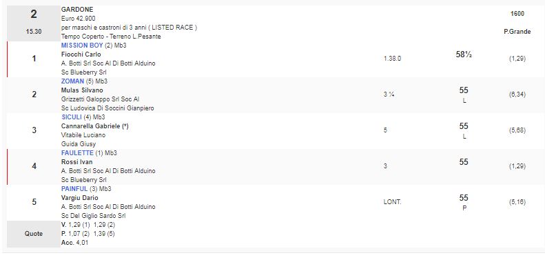 2^ Corsa Premio Gardone vinta da Mission Boy