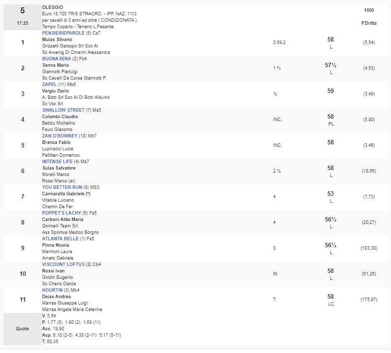 5^ Corsa Premio Oleggio vinta da PensierieParole