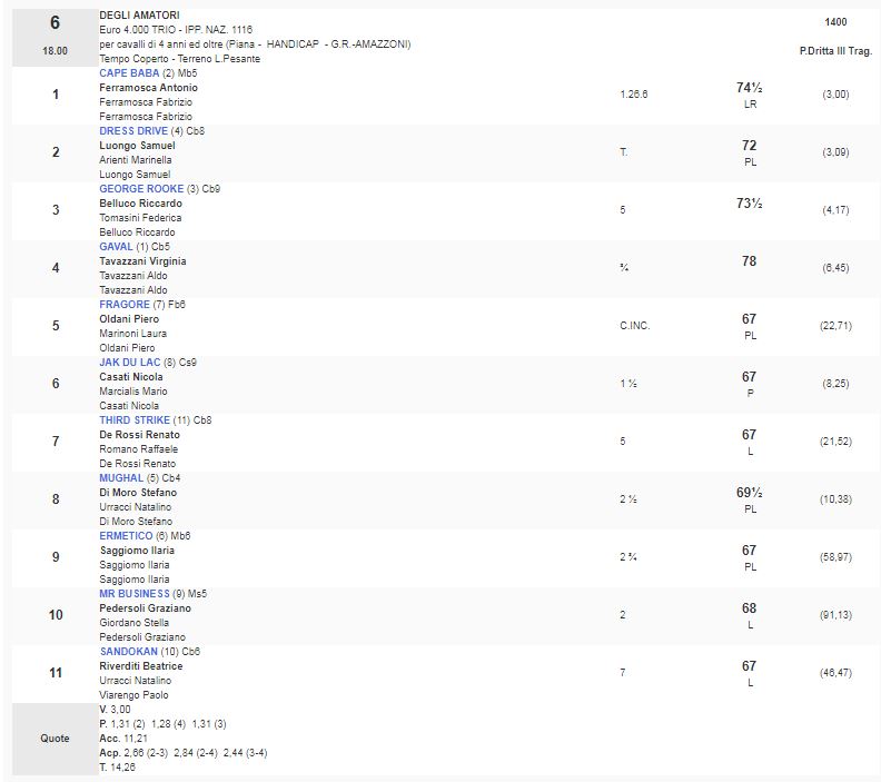 6^ Corsa Premio Degli Amatori vinta da Cape Baba