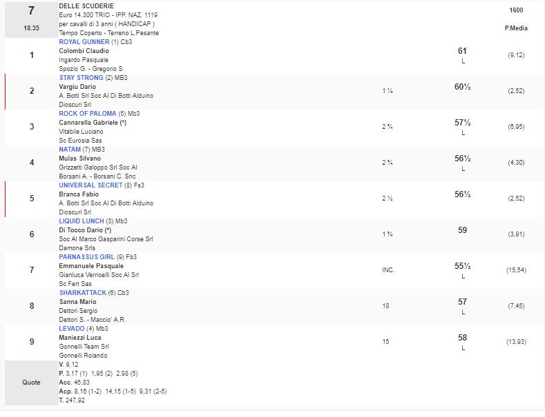 7^ Corsa Premio Delle Scuderie vinta da Royal Gunner