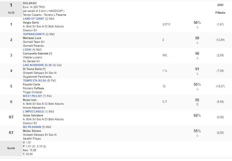1^ Corsa Premio Dolzago vinta da Land of Giant