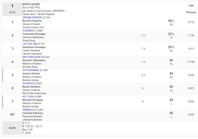 1^ Corsa Premio North Queen vinta da Dream Painter