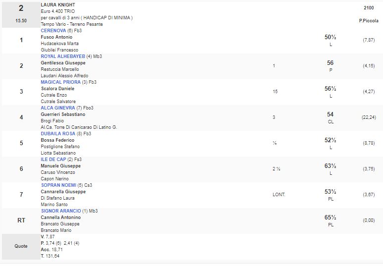 2^ Corsa Premio Laura Knight vinta da Cerenova
