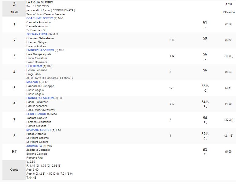 3^ Corsa Premio La Figlia di Jorio vinta da Coach Me Softly