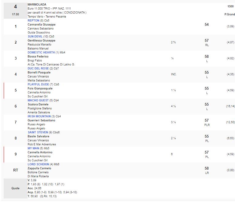 4^ Corsa Premio Marmolada vinta da Repton