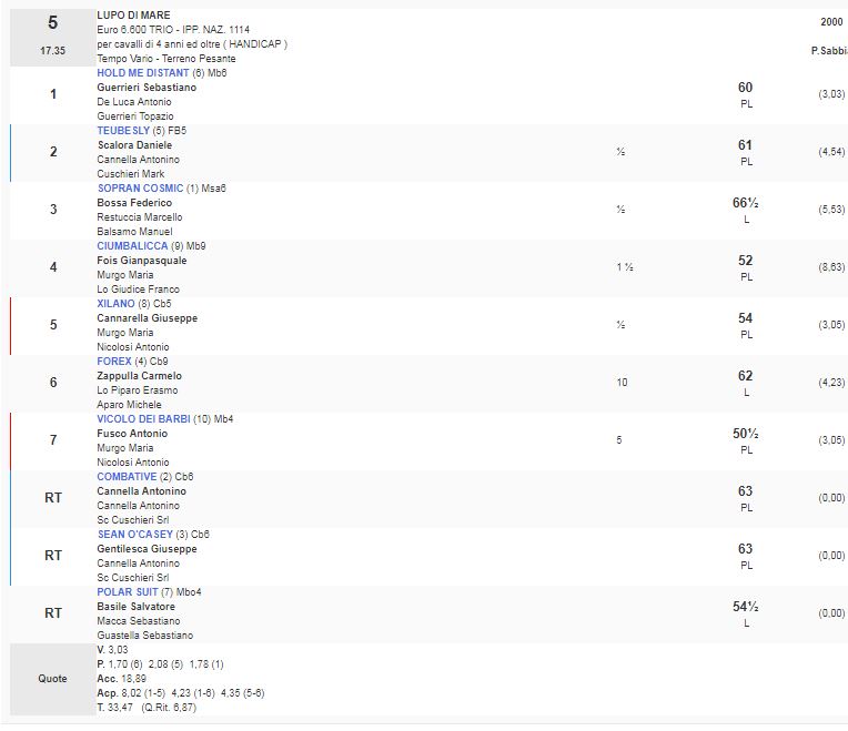 5^ Corsa Premio Lupo di mare vinta da Hold Me Distant
