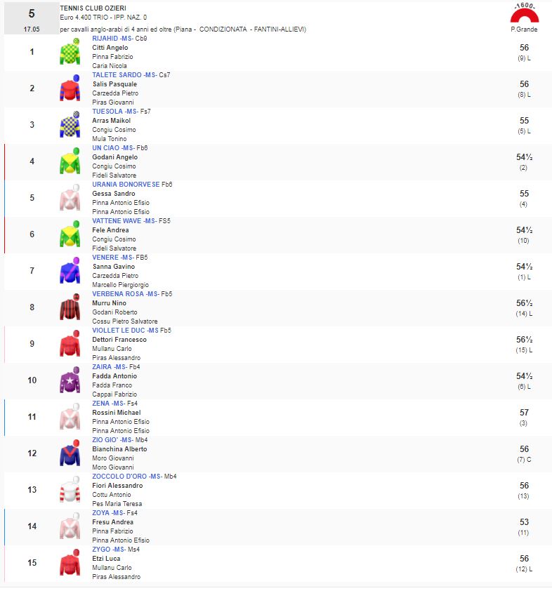 5^ Corsa Premio Tennis Club Ozieri