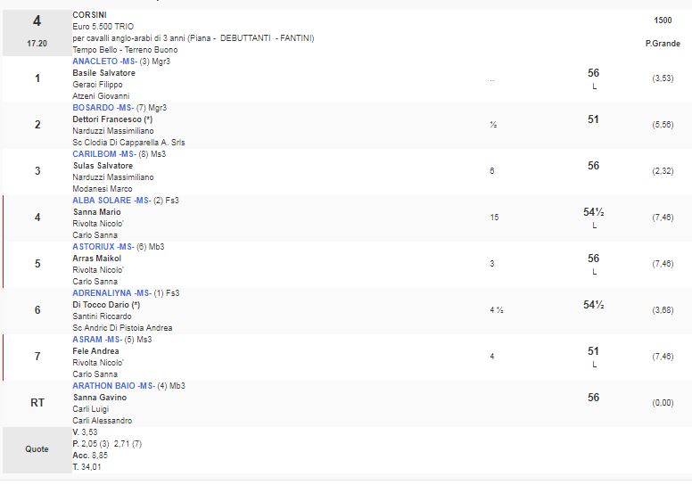 Faccio i complimenti alla Scuderia Geraci – Atzeni che oggi ha fatto en plein vincendo tutte e due le corse per Cavalli Anglo-Arabi con Umatilla alla seconda e con Anacleto in questa.