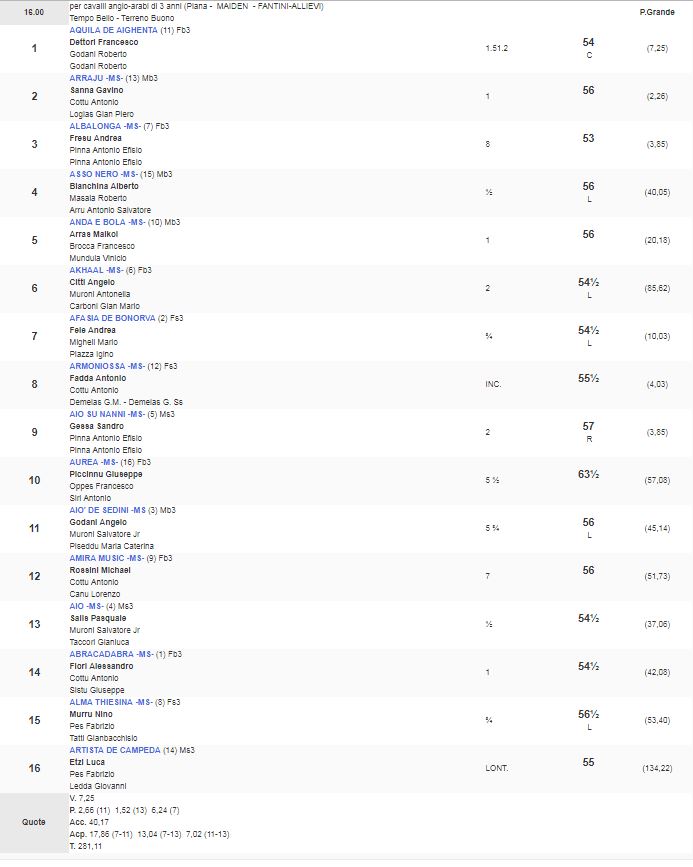 Ippica, Chilivani: Oggi 13/04 Risultati 3^ Corsa Vince Aquila de Aighenta 3^ Corsa Premio D. Giovanni Demontis vinta da Aquila de Aighenta da Fisich e Micale de Aighenta allevata da Pintori Giovanni Battista Condividi sul web: Condividi su Facebook (Si apre in una nuova finestra) Facebook Condividi su WhatsApp (Si apre in una nuova finestra) WhatsApp Condividi su Telegram (Si apre in una nuova finestra) Telegram Condividi su X (Si apre in una nuova finestra) X Stampa (Si apre in una nuova finestra) Stampa Invia un link a un amico via e-mail (Si apre in una nuova finestra) E-mail Mi piace Caricamento... Correlati