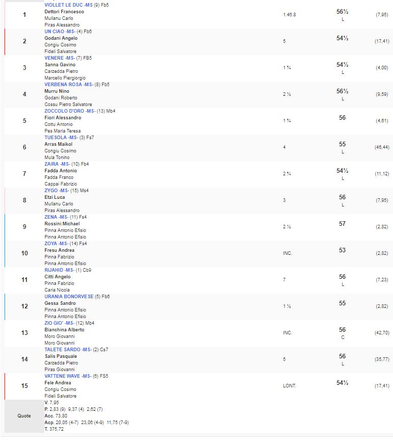 Ippica, Chilivani: Oggi 13/04 Risultati 5^ Corsa Vince Viollet le Duc 5^ Corsa Premio Tennis Club Ozieri vinta da Viollet le Duc da Vidoc III e Sa Rosale di proprietà di Piras Alessandro e allenato da Mullanu Carlo Condividi sul web: Fai clic per condividere su Facebook (Si apre in una nuova finestra) Facebook Fai clic per condividere su WhatsApp (Si apre in una nuova finestra) WhatsApp Fai clic per condividere su Telegram (Si apre in una nuova finestra) Telegram Fai clic per condividere su X (Si apre in una nuova finestra) X Fai clic qui per stampare (Si apre in una nuova finestra) Stampa Fai clic per inviare un link a un amico via e-mail (Si apre in una nuova finestra) E-mail Mi piace Caricamento... Correlati