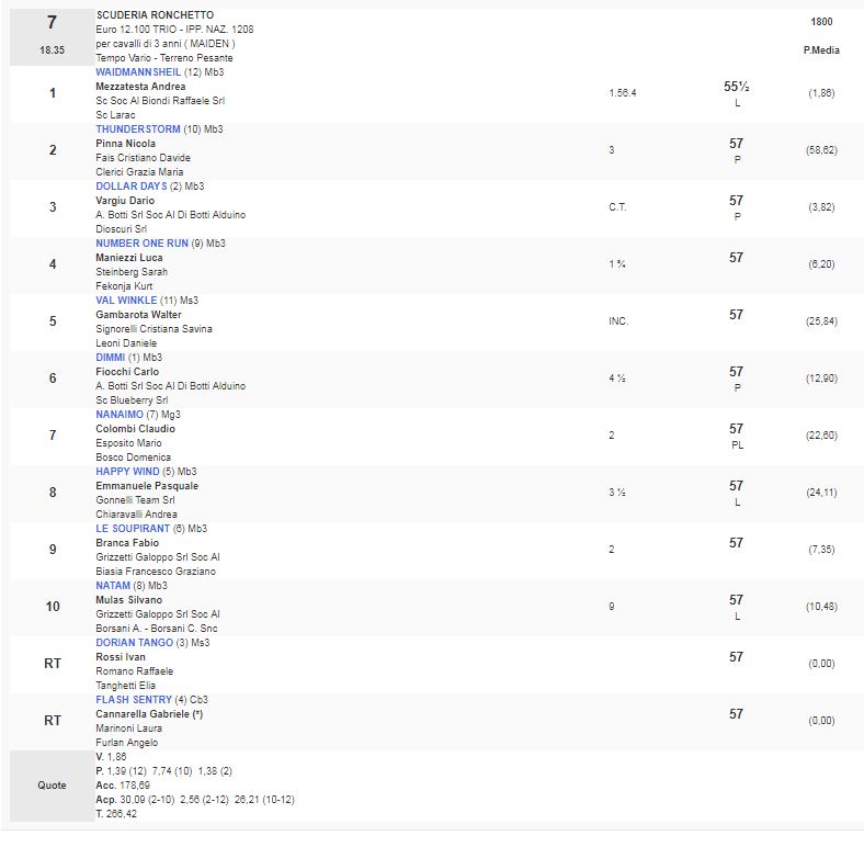 7^ Corsa Premio Scuderia Ronchetto vinta da Waidmann Sheil