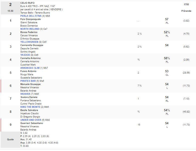 | Quote | V. 4,94 P. 1,57 (8) 1,36 (7) 1,76 (2) Acc. 7,74 Acp. 4,23 (2-7) 4,03 (2-8) 3,22 (7-8) T. 56,06 |