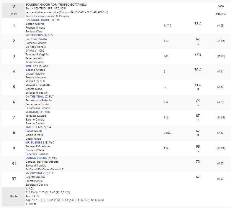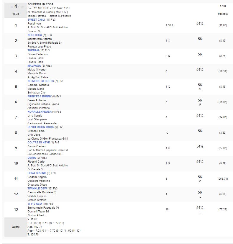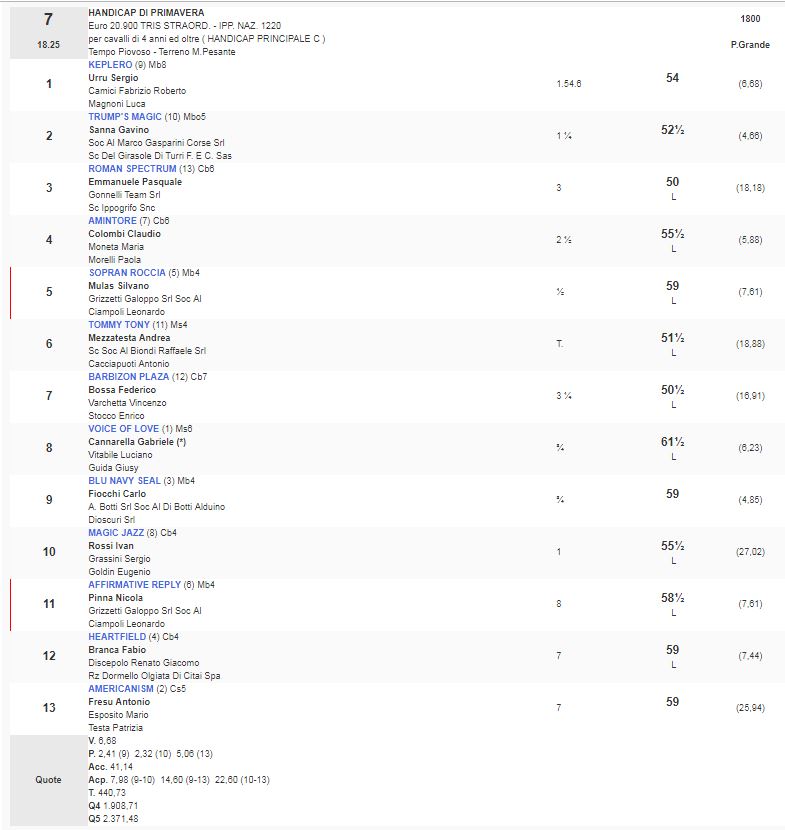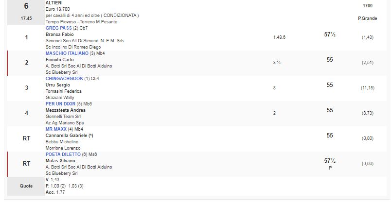Ippica, Milano: Oggi 14/04 Risultati Corse Odierne 1^ Corsa Premio Resegone vinta da Like Nowhere Else 2^ Corsa Premio Scuderia Giocri – Agri – Trofeo Bottanelli vinta da Carriage Trade 3^ Corsa premio Arbogna vinta da Fast Lane 4^ Corsa Premio Scuderia in Rosa vinta da Sweet Chili 5^ Corsa Premio Sarnico vinta da Saga Timgad 6^ Corsa Premio Altieri vinta da Greg Pass 7^ Corsa Premio Handicap di Primavera vinta da Keplero Condividi sul web: Fai clic per condividere su Facebook (Si apre in una nuova finestra) Facebook Fai clic per condividere su WhatsApp (Si apre in una nuova finestra) WhatsApp Fai clic per condividere su Telegram (Si apre in una nuova finestra) Telegram Fai clic per condividere su X (Si apre in una nuova finestra) X Fai clic qui per stampare (Si apre in una nuova finestra) Stampa Fai clic per inviare un link a un amico via e-mail (Si apre in una nuova finestra) E-mail Mi piace Caricamento... Correlati