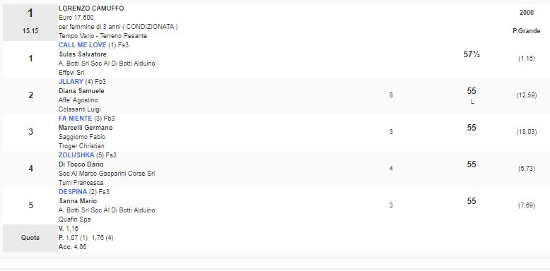 1^ Corsa Premio Lorenzo Camuffo vinta da Call Me Love