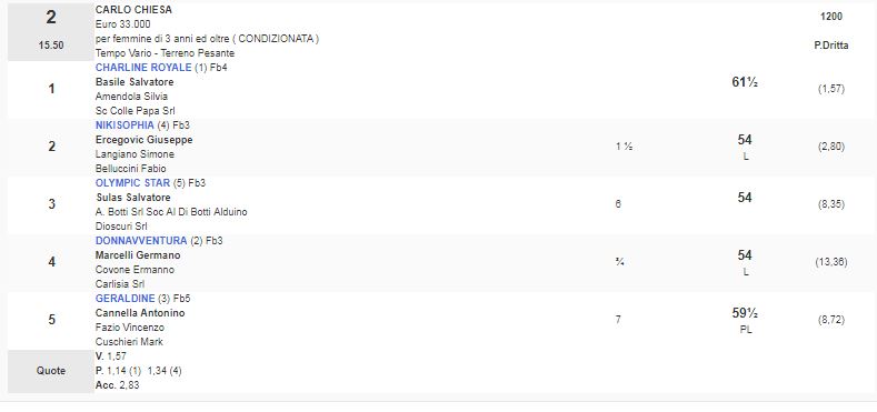 2^ Corsa Premio Carlo Chiesa vinta da Charline Royale