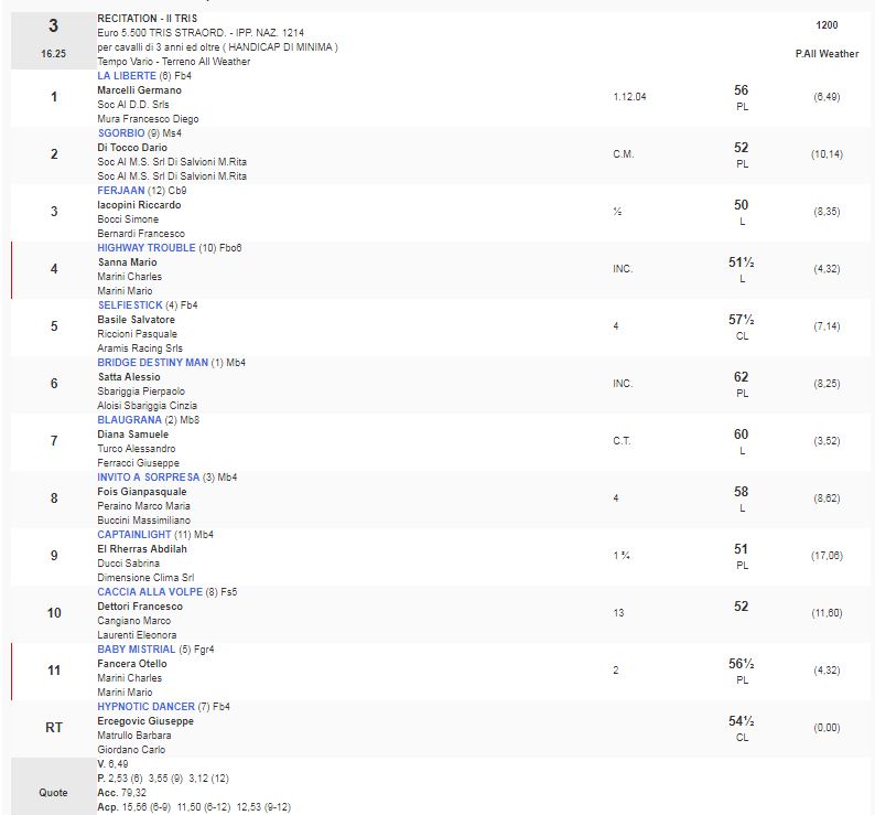 3^ Corsa Premio Recitation – II Tris vinta da La Liberte