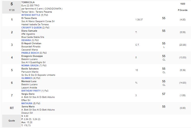 5^ Corsa Premio Torricola vinta da Intense Battle