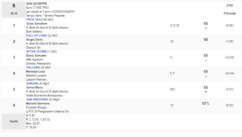 6^ Corsa Premio San Giuseppe vinta da Trita Sass