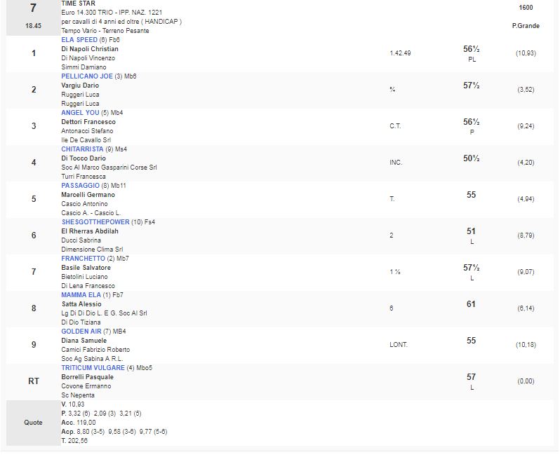 7^ Corsa Premio Time Star vinta da Ela Speed
