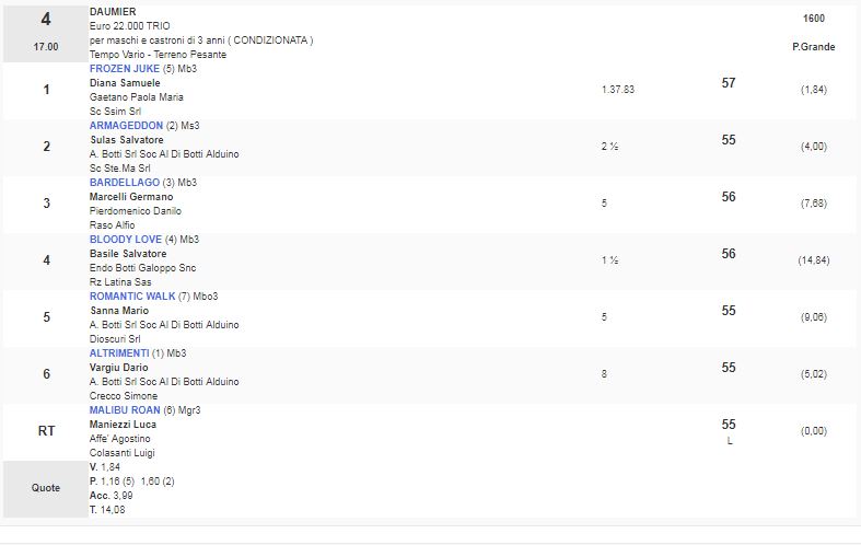 4^ Corsa Premio Daumier vinta da Frozen Juke