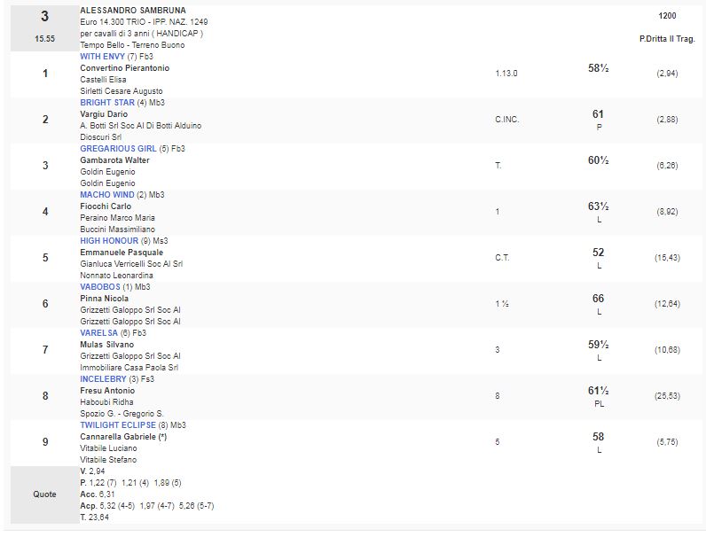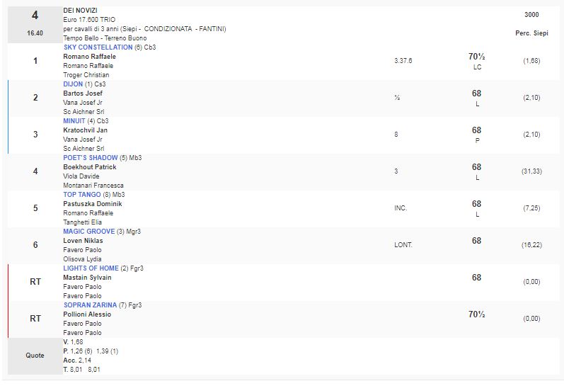 Ippica, Milano: Oggi 17/04 Risultati 3^ e 4^ Corsa Vincono Whit Envy e Sky Constellation 3^ Corsa Premio Alessandro Sambruna vinta da With Envy 4^ Corsa Premio Dei Novizi vinta da Sky Constellation Condividi sul web: Condividi su Facebook (Si apre in una nuova finestra) Facebook Condividi su WhatsApp (Si apre in una nuova finestra) WhatsApp Condividi su Telegram (Si apre in una nuova finestra) Telegram Condividi su X (Si apre in una nuova finestra) X Stampa (Si apre in una nuova finestra) Stampa Invia un link a un amico via e-mail (Si apre in una nuova finestra) E-mail Mi piace Caricamento... Correlati